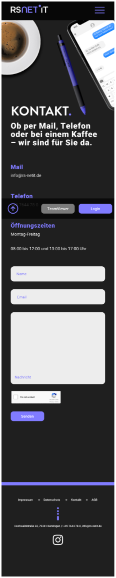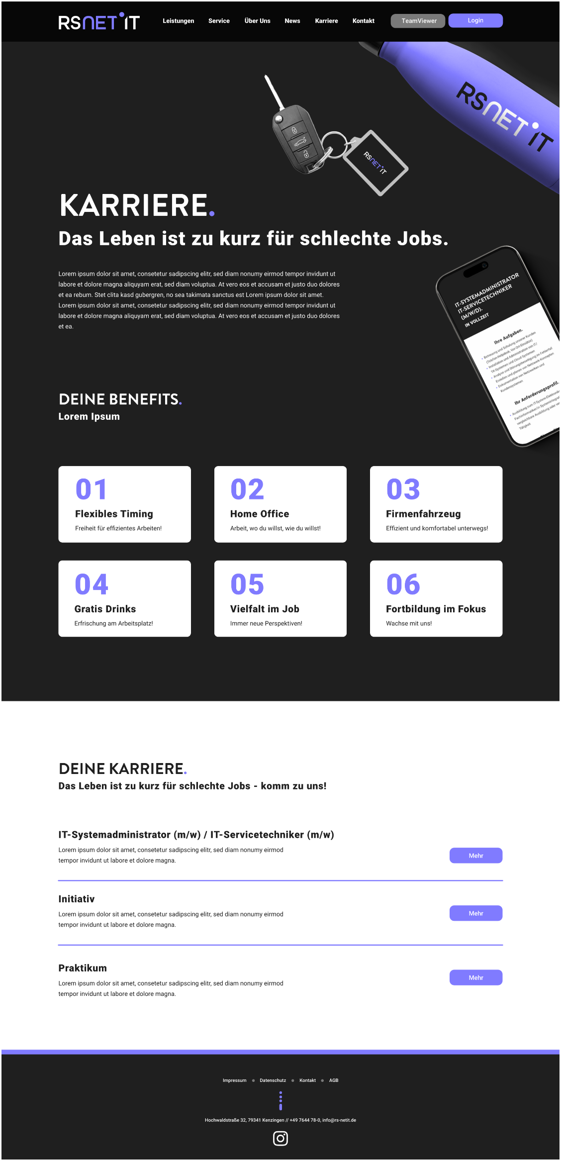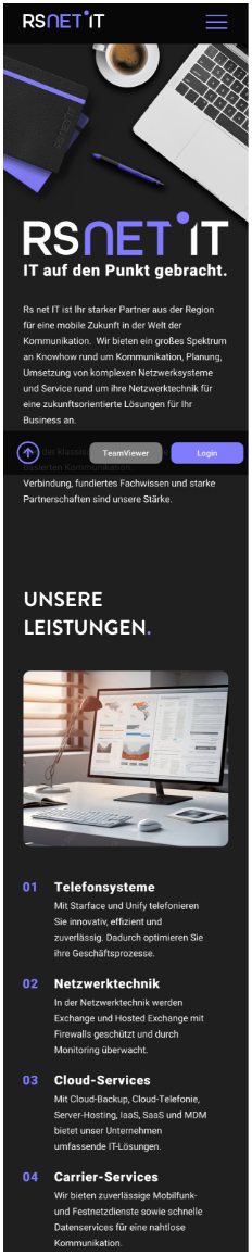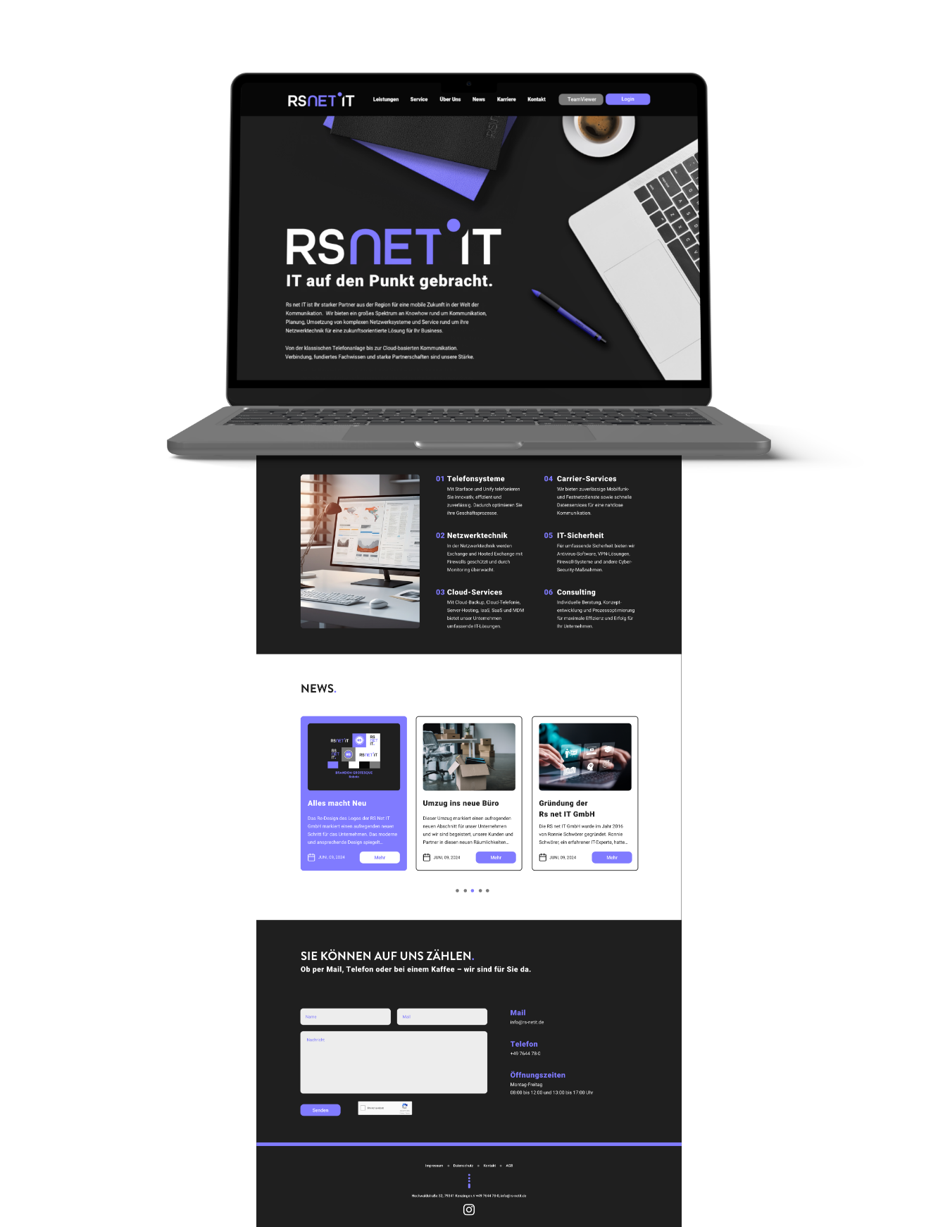 Für das IT-Unternehmen RS net IT aus Kenzingen haben wir ein modernes Webdesign sowie ein neues Logo entwickelt, das die Kernkompetenzen des Unternehmens – IT, Vernetzung und technologischen Fortschritt – visuell transportiert. Klare Linien, ein prägnantes Farbkonzept und eine reduzierte Formensprache verleihen dem Auftritt eine zeitgemäße Ästhetik und unterstreichen die Professionalität und Innovationskraft des Unternehmens.